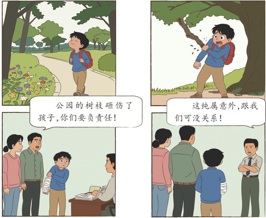 然然太无辜了,好好在公园里散步,居然被掉落的树枝砸伤,公园工作人员还这种态度,真无理! 其实公园工作人员的说法是错误的,根据《中华人民共和国民法典》第一千二百五十七条规定:“因林木折断、倾倒或者果实坠落等造成他人损害,林木的所有人或者管理人不能证明自己没有过错的,应当承担侵权责任。”在这个案例中,公园作为树木的管理者,如果无法证明自己已经尽到了定期排查、修剪等安全管理义务,就需要对然然的伤害