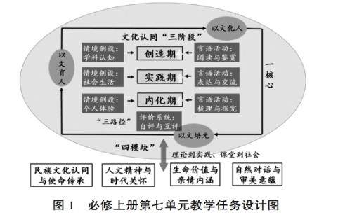 [摘要]针对高中语文教学中融入课程思政的现实困境,依托部编版必修上册第七单元,围绕“文学阅读与写作”任务群,构建“一核心、四模块、三路径”的教学任务群体系,通过“创造期一实践期—内化期”三阶段育人环节,深入解读课程标准、单元导读、课文内容与学习提示,精准提炼“文化自信”等育人内核,整合文本解读、情境创设、表达实践与探究反思等任务路径,引导学生在真实语文活动中实现文化认同的构建与审美能力的提升,助力语文育人功能的系统释放。