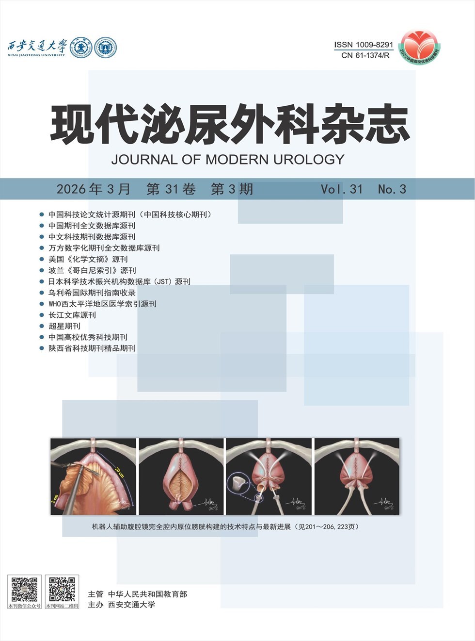 《现代泌尿外科杂志》于1996年创刊,2000年公开发行,是由国家教育部主管、西安交通大学主办的一本泌尿外科领域的专业学术期刊。主要报道泌尿外科、男科学领域的最新科研成果和临床诊治经验,辟有专家论坛、诊疗安全共识、临床研究、基础研究、短篇与个案、综述等栏目,是临床泌尿外科、男科学医师、医学院校师生等日常学习和工作中的必读之物。